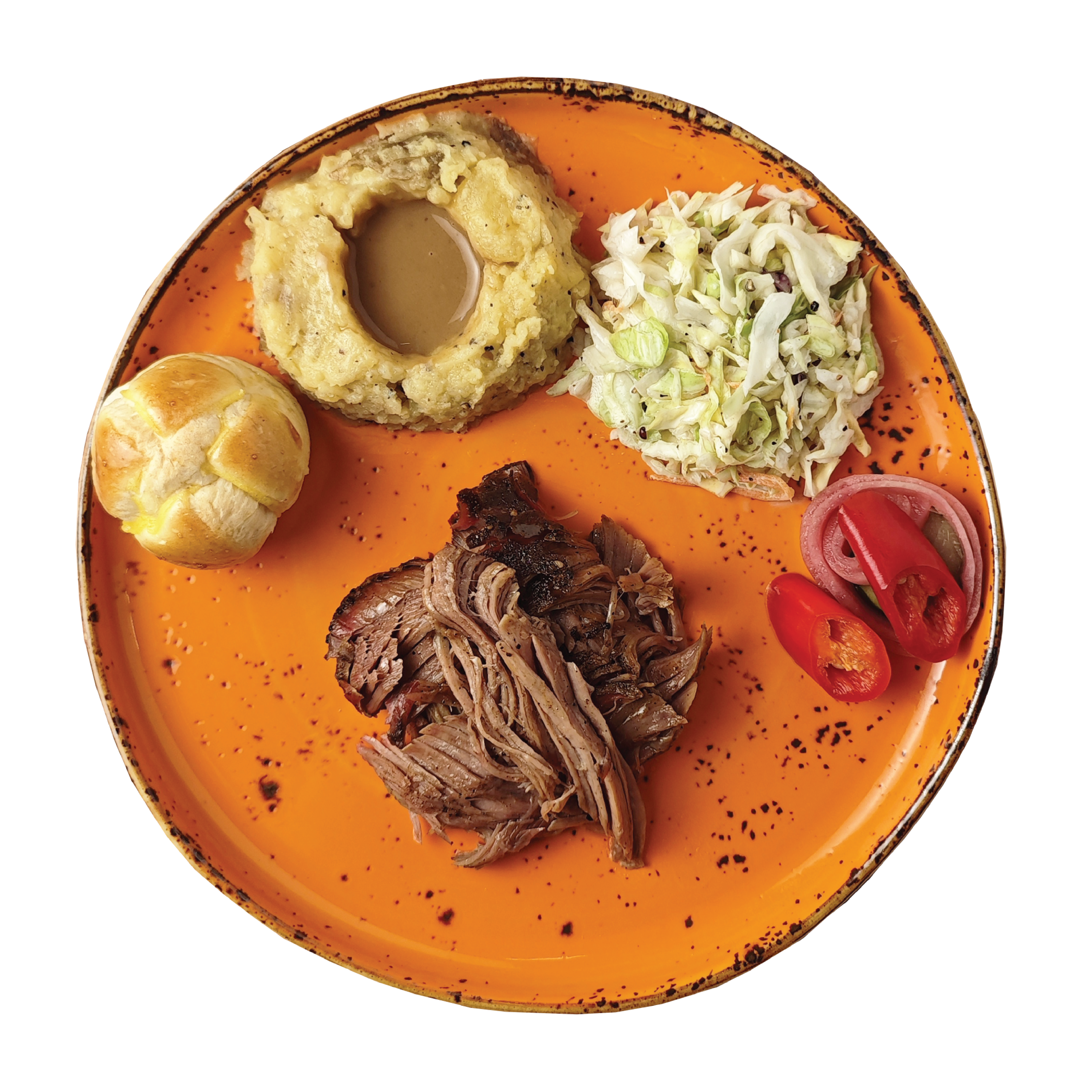 100g Brisket, Mashed Brotatoes, Slaw, Brotato Bun.